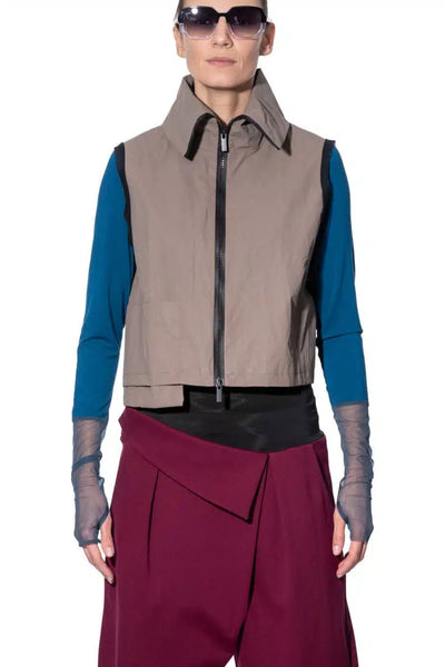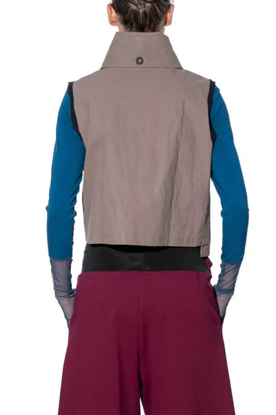 Art Point Cropped Vest with Turtleneck and Smartphone Pocket