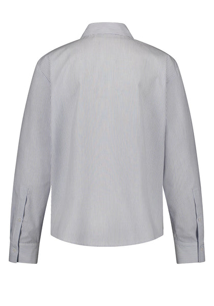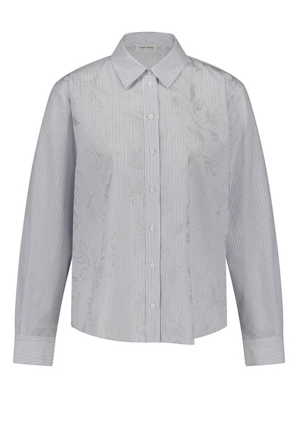 Elevate your wardrobe with the Gerry Weber Floral Striped Shirt in Blue. Featuring a classic collared, button-up design with cuffed sleeves, this shirt expertly combines timeless stripes with delicate floral patterns for a fresh, stylish look.