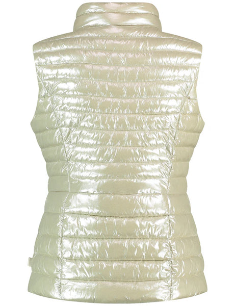 Throw this on as an extra layer and for a splash of gold colour! Padded vest with stand-up collar, slit pockets and zip fastening.
