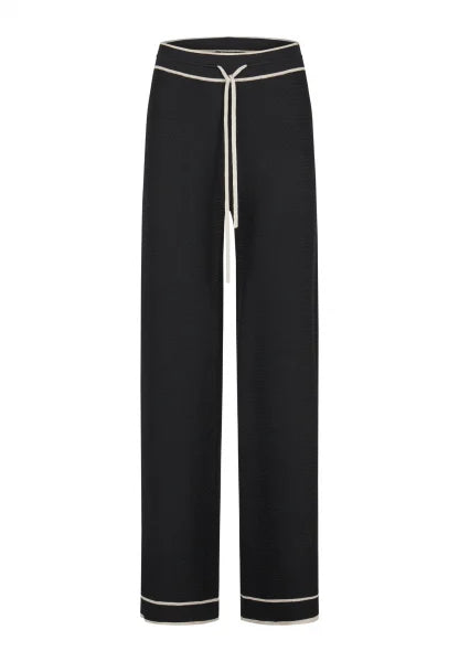 Made from a comfortable viscose blend, these knit pants are extremely comfortable to wear. A tie waistband allows for a customized fit, while contrasting stripes add a sporty, graphic touch to the design. Perfect for a fashionable look.