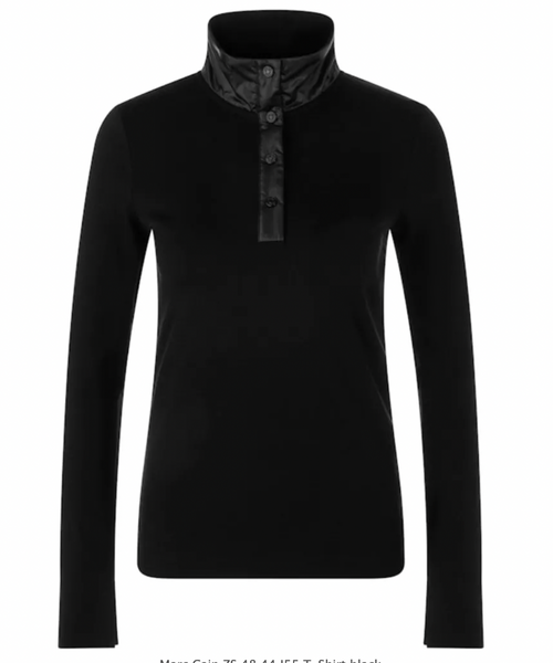 Ribbed shirt with a shiny collar. A fitted long-sleeved shirt in fine rib with a stand-up collar and a short snap placket. The shiny material creates a fashionable contrast between the collar and button placket. The slim fit makes this shirt the ideal basic for layering. Pleasantly stretchy and snug—perfect for sporty yet elegant styles.