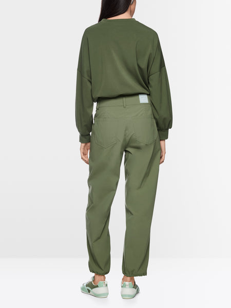 The RUMA trousers impress with their relaxed fit, high waistband and modern O-shape. The slightly cropped leg emphasises the trendy look. The decorative seams lend these trousers a sporty cargo look. The hem has an elasticated waistband so that the leg width can be adjusted as desired. These trousers fasten with a zip and double logo press stud. Ideal for casual yet feminine styles.