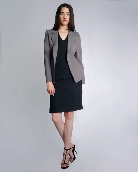 Discover ANNA, our most iconic jacket crafted from luxurious double jersey fabric. With a tailored collar, notched lapels, and faux breast pocket detailing, this jacket exudes sophistication. Plus, the removable belt adds a touch of versatility to elevate any outfit.