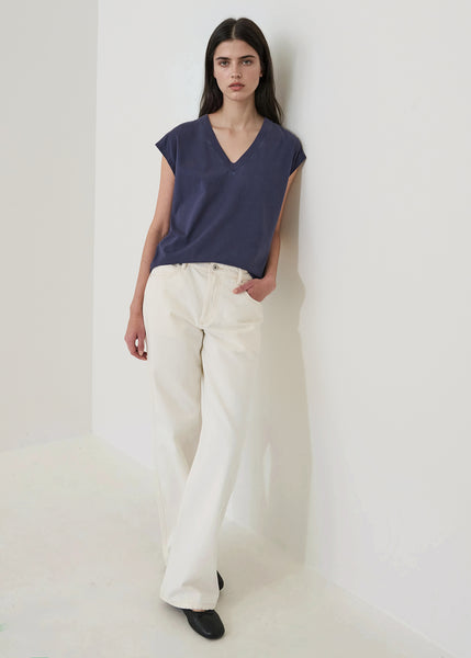 Patrick Assarraf V-Neck Top in Indigo Blue