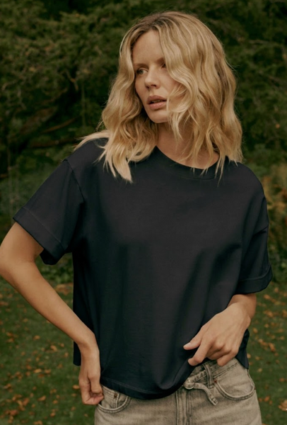 Made from soft French terry loopback fabric, it feels plush yet breathable. The boxy silhouette features drop shoulders, a crew neckline, rolled-up sleeves and a straight, level hem for a relaxed square fit. Ideal for casual chic days and effortless layering, this REPEAT cashmere essential elevates laid-back looks.