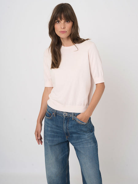 Spun from 100% superfine cotton, the featherweight, silky knit feels cool and smooth, finished with a ribbed crew neck and ribbed hem. Cut in a straight boxy cut for a modern, square fit, the short sleeves keep proportions crisp. From REPEAT cashmere, perfect for desk-to-dinner layering.