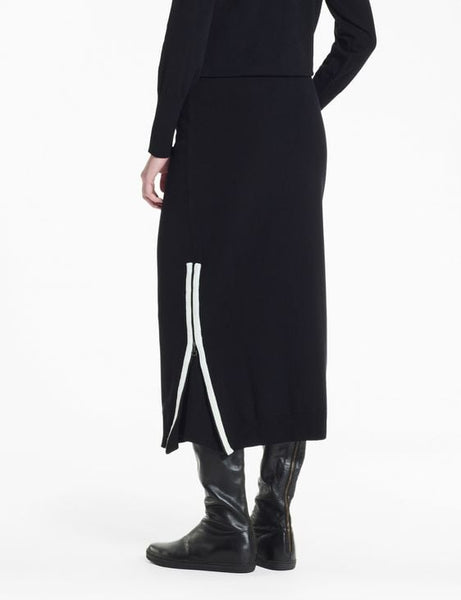 This tube skirt highlights clean tailoring and subtle detail. The zippered hem unfastens to reveal a gusset, introducing ease of movement without compromising the skirt’s structured silhouette.